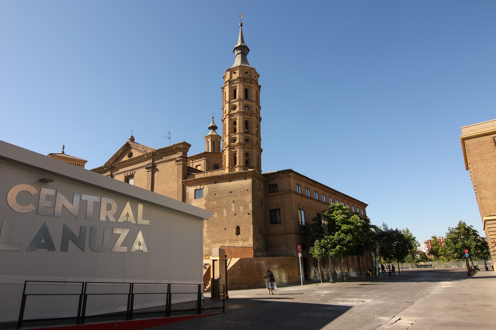 Wschodnia pierzeja Plaza del Pilar: La Catedral del Salvador, La Lonja (budynek z lewej strony) oraz pomnik Francisco de Goyi