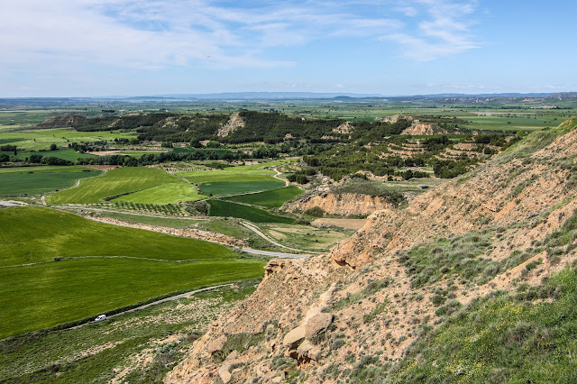 Z głównego miasta regionu dalsza droga prowadzi w stronę gór, na północny-zachód. Następnym przystankiem jest niewielka Bolea, której wielkim atutem jest już sama lokalizacja. Miejscowość położona jest na niewielkim wzgórzu, na zboczach Pico Gratal i Sierra de Caballera, pośród kipiących zielenią pól i łąk. Zabudowa Bolei jest typowym przykładem regionalnej architektury, charakteryzującej się bardzo ciasną zabudową, elewacjami utrzymanymi w tonacjach brązów i ciemnej żółci oraz spadzistymi dachami, krytymi dachówką. Z tą ciasnotą ani trochę nie przesadzam - niektóre zakręty z trudem idzie pokonać nawet małym autem i chociaż chwilami jestem nawigowany z zewnątrz i tak zdarza mi się przetrzeć błotnik... Obowiązkowym zwieńczeniem wizyty w Bolea musi być zdobycie najwyższego wyniesienia z piękną późnogotycką kolegiatą Santa María la Mayor. Rzut oka na sielankową okolicę naprawdę pozwala zapomnieć o wszystkich problemach...